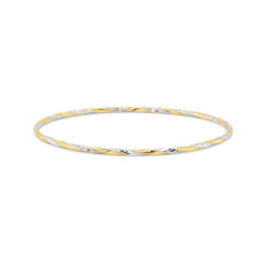 This classic yet trendy twisted slip-on bangle is crafted in lustrous 10K yellow and white gold. Great for stacking with other bangles this bracelet is a perfect way to add a touch of elegance and sophistication to any ensemble. This stunning piece makes a lovely addition, suitable for all occasions.