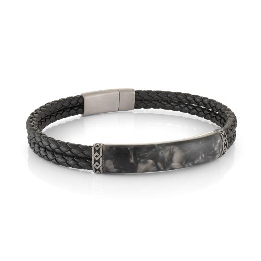 Crafted from durable stainless steel, it incorporates a marble plate, adding a contemporary and distinct touch to the bracelet. Its sleek and modern style makes it a versatile accessory that complements various looks with its edgy yet refined appearance.