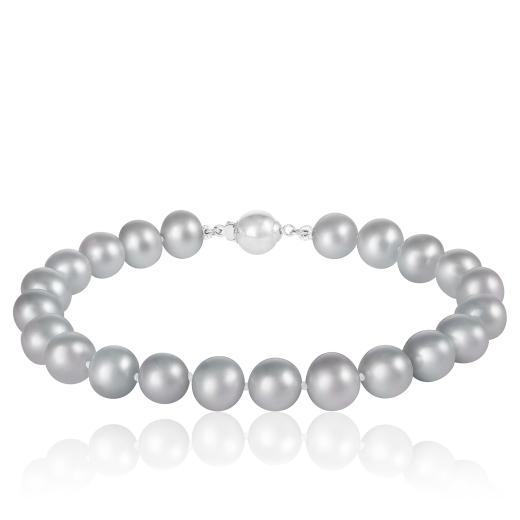 Featuring lustrous 8mm grey freshwater pearls, each carefully selected for their natural sheen, the bracelet is crafted with a delicate sterling silver clasp that adds a touch of shine. The soft, cool tone of the grey pearls complements any skin tone, making this piece versatile for both casual and formal occasions.