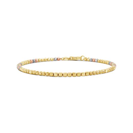 This elegant 7.5" bracelet is crafted in 10K yellow, white and rose gold and features diamond cut links for incredible sparkle. Treat yourself and brighten up your day with this timeless piece.