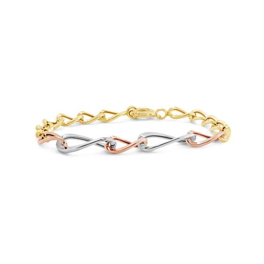 This 10k tri colour gold graduated oval link bracelet shines with 10k white, yellow and rose gold links for a look that is versatile and sleek with a touch of sparkle from its high polish. A timeless and classic piece to add to your jewellery collection.
