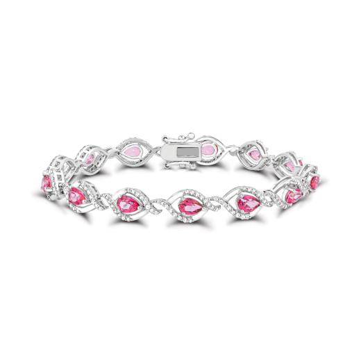 This radiant bracelet is crafted in sterling silver and features pear cut pink topaz accented by shimmering white topaz gemstones. This exquisite bracelet is sure to add a touch of colour and elegance to any ensemble. Choose this stunning piece either for yourself or someone you love.