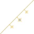Radiate celestial elegance with the Bella Moda 10K Yellow Gold Diamond Star Anklet. Crafted from lustrous 10-karat gold, delicate diamond-studded stars adorn its length, twinkling like the night sky. Effortlessly elegant, this anklet adds a touch of celestial charm to any look, whether paired with heels or a barefoot stroll along the shore.