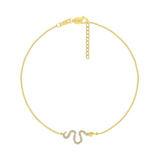 Wrap your ankle in sophistication with the Bella Moda 10K Yellow Gold Diamond Snake Anklet. Crafted from luxurious 10K gold, a sinuous serpent motif adorned with dazzling diamonds slithers along its length. This anklet exudes a blend of elegance and mystique, adding a touch of serpentine allure to your ensemble.