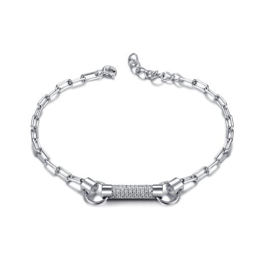 This sterling silver bracelet features sparkling cubic zirconia stones, beautifully set to create a radiant and sophisticated look. The shimmering stones catch the light, adding a touch of elegance to any outfit.