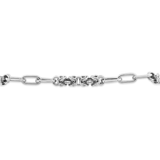 This 7" bracelet combines the intricate beauty of Byzantine links with the modern elegance of a paperclip design, all crafted in sterling silver. Its unique blend of textures and polished finish creates a timeless and stylish accessory, perfect for adding sophistication to any outfit.