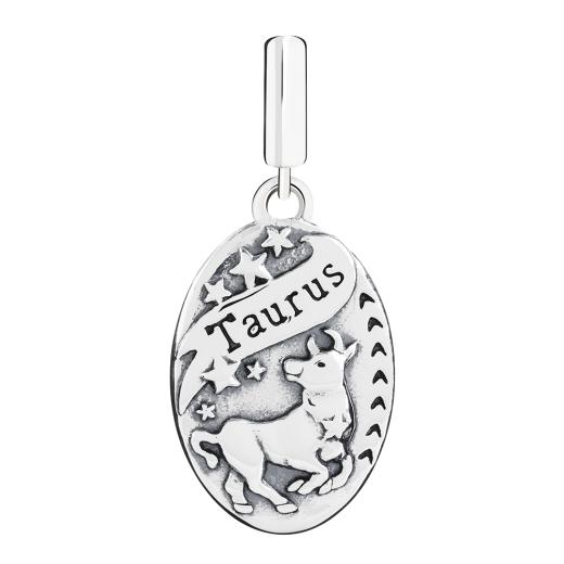 Your sign has been beautifully rendered by our artists in sterling silver. Filled with rich, lyrical detail on the front, it features the Zodiac symbol for Taurus on the highly polished reverse side. Add this personalized charm to your bracelet or wear it quite stylishly on a neck chain. Includes a charm card describing the traits of this sign.