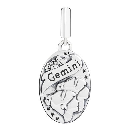 Your sign has been beautifully rendered by our artists in sterling silver. Filled with rich, lyrical detail on the front, it features the Zodiac symbol for Gemini on the highly polished reverse side. Add this personalized charm to your bracelet or wear it quite stylishly on a neck chain. Includes a charm card describing the traits of this sign.