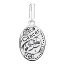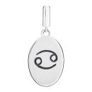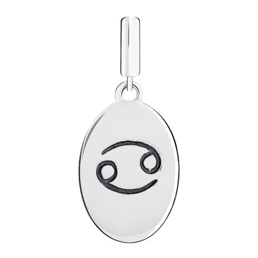 Your sign has been beautifully rendered by our artists in sterling silver. Filled with rich, lyrical detail on the front, it features the Zodiac symbol for Cancer on the highly polished reverse side. Add this personalized charm to your bracelet or wear it quite stylishly on a neck chain. Includes a charm card describing the traits of this sign.