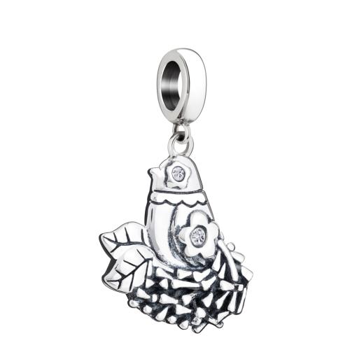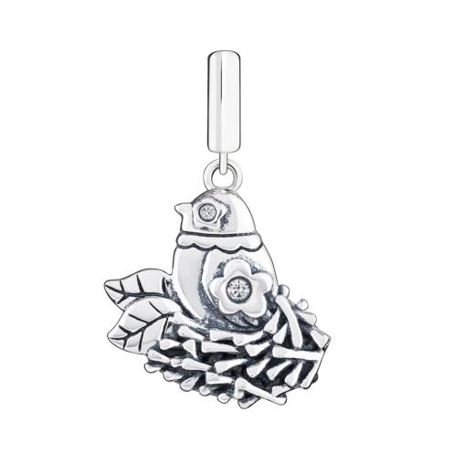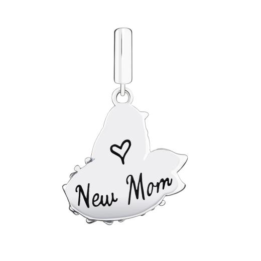Celebrate new moms and moms to be! An adorable mommy bird sits in her nest, awaiting the new addition to her family. The back has an inscription of ‘New Mom’ with a small heart. Crafted in .925 sterling silver with Swarovski Crystal detail.