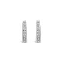 Round diamonds are channel set in beautiful hoops of 10k white gold. The earrings have a total diamond weight of .50 carats with secure hinged backings
