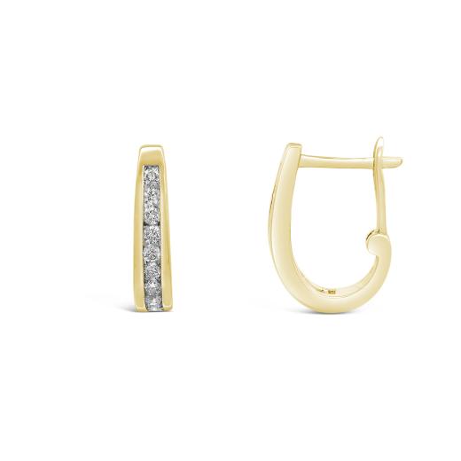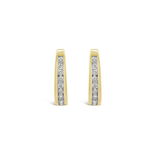 Beautifully matched round diamonds are elegantly channel set in hoops of 10k yellow gold. These .50ctw earrings are secured by hinged backings
