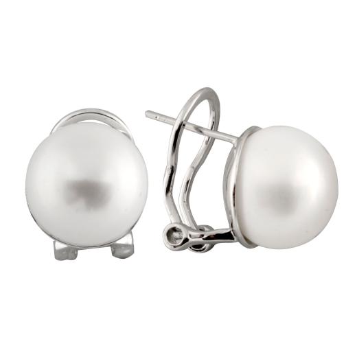 Sterling silver omega clip earrings with 12-13mm button pearls.