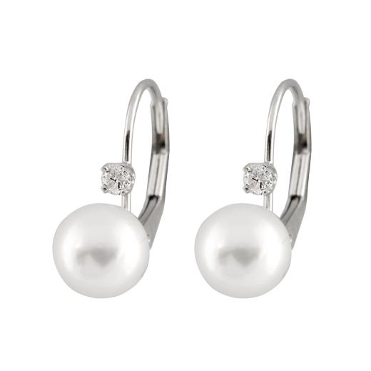 14k white gold leverback earrings with 6-6½mm Chinese cultured saltwater pearls and diamond 0.06ct DTW
