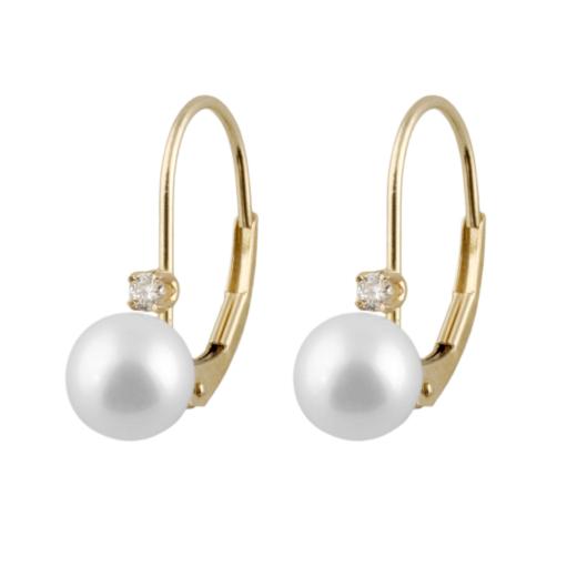 14k leverback earrings with 6-6½mm Chinese cultured saltwater pearls and diamond 0.06ct DTW, yellow gold.
