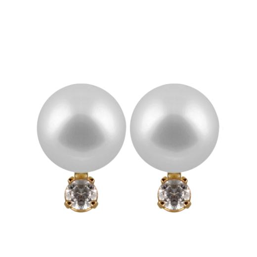 14k gold earrings with 7-7½mm Chinese cultured saltwater pearl and diamonds 0.10ct DTW.
