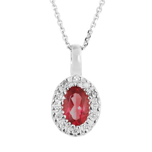 10K White Gold 0.05CTW Diamond and Ruby Halo Pendant