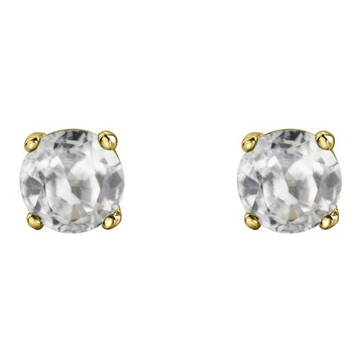 These classic stud earrings are set in 10-karat gold and feature 4mm white topaz gemstones. White Topaz is the alternative birthstone for April. These earrings are a lovely versatile addition to any ensemble.