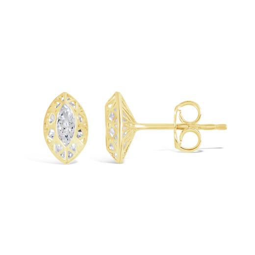 Crafted in warm yellow gold, these stud earrings feature dazzling pear-shaped cubic zirconia gems. Their classic design and sparkle make them a versatile choice, perfect for both everyday wear and special occasions. These earrings will effortlessly enhance your style with a touch of sophistication and glamour.