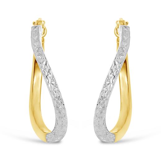 These earrings are a perfect blend of classic elegance and modern style. The combination of yellow and white gold, along with the diamond-cut twisted design, adds a unique and captivating dimension to your outfit. Whether you're dressing up for a special occasion or adding a touch of glamour to your everyday look, these earrings are a statement piece that will undoubtedly make you stand out with their brilliance and style.