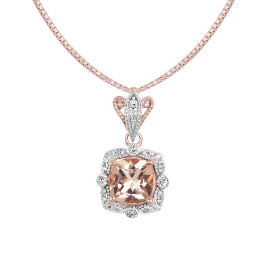 Crafted in gleaming rose gold, these delicate earrings feature two cushion cut morganite stones at their centre encircled with shimmering diamonds. Enhanced with a high polish finish, these divine morganite and diamond earrings are the perfect choice for your sweetheart.