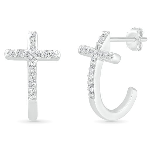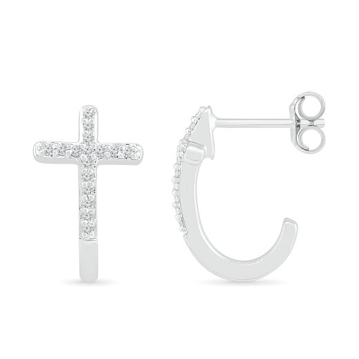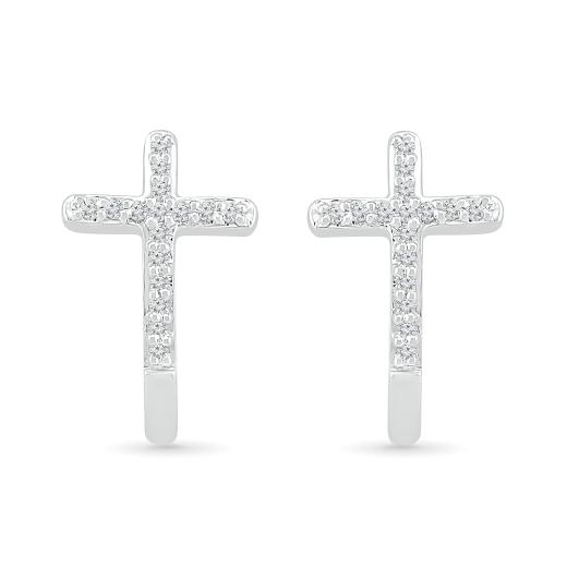 Embrace your faith with these exquisite 10K White Gold Diamond Cross Earrings, featuring a total of 0.10 carats of sparkling diamonds. The white gold setting perfectly accentuates the brilliance of the diamonds, making these earrings a meaningful and fashionable choice for any occasion, whether you're attending a religious ceremony or simply adding a touch of spirituality to your style.