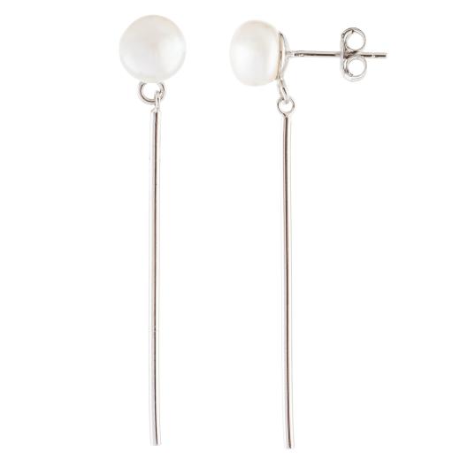 A pair of white dangling freshwater pearl sterling silver rhodium plated earrings