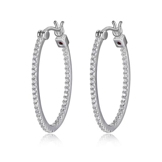 SS ELLE "Rodeo Drive" Rhodium Plated Sterling Silver Cubic Zirconia Inside Out 30x20MM Round Hoop Earring