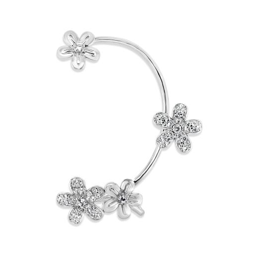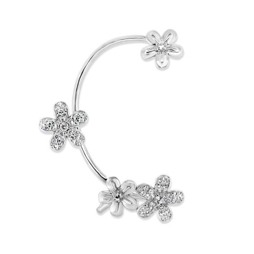 Sterling Silver Cubic Zirconia Floral Left Ear Cuff