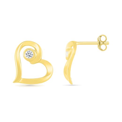 Express your love and style with these 10K Yellow Gold Diamond Heart Earrings. Crafted in warm yellow gold, these earrings feature delightful heart-shaped designs adorned with sparkling diamonds. Their romantic and timeless style makes them a perfect choice for adding a touch of sophistication and sentiment to your look, making these earrings a lovely symbol of affection and a delightful gift option.