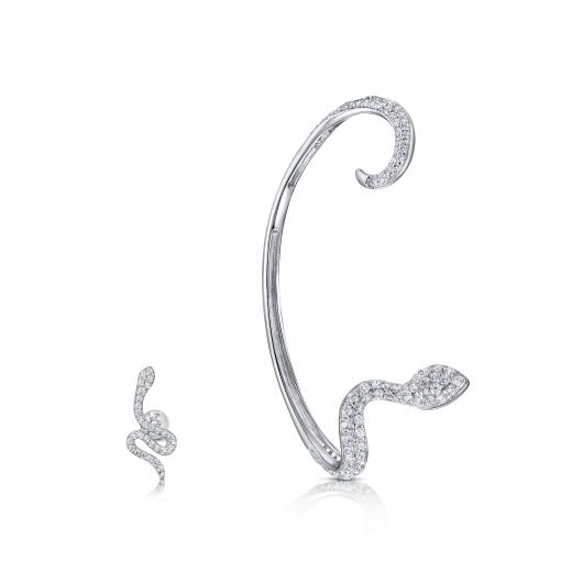 Sterling Silver Cubic Zirconia Right Snake Ear Cuff and Stud