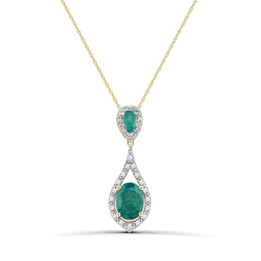 These bold and bright emerald and diamond earrings from our Mareseille Collection are crafted in 10-karat yellow gold and feature oval and pear cut genuine emeralds at their centre surrounded by shimmering diamonds. With vibrant gemstone colour and brilliant luster, these earrings are sure to make a standout addition to any jewellery collection.