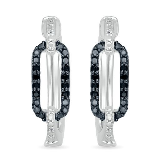 Elevate your style with these Sterling Silver Black Diamond Link Hoops. Crafted in sleek sterling silver, these hoop earrings feature a unique and edgy design with black diamonds. Their contemporary and elegant style adds a touch of intrigue and sophistication to your look, making them a versatile choice for those who want to make a statement and showcase their unique sense of fashion with a touch of luxury.