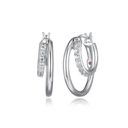 These sterling silver double-layer hoops from Elle offer a contemporary and chic design, featuring two intertwined hoops that add depth and movement. Adorned with sparkling cubic zirconia, they bring a touch of elegance and shine to the modern hoop style.