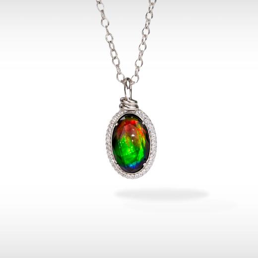 These earrings feature stunning ammolite stones set in intricately designed sterling silver knots. The vibrant colours of the ammolite, combined with the elegant silver setting, create a unique and eye-catching piece, perfect for adding a touch of natural beauty and sophistication to any look.