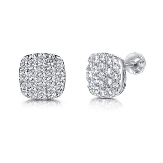 These pave stud earrings are set in sleek sterling silver and feature sparkling cubic zirconia's. These earrings are a lovely choice to suit all occasions. Add a touch of glamour to your life and buy today!