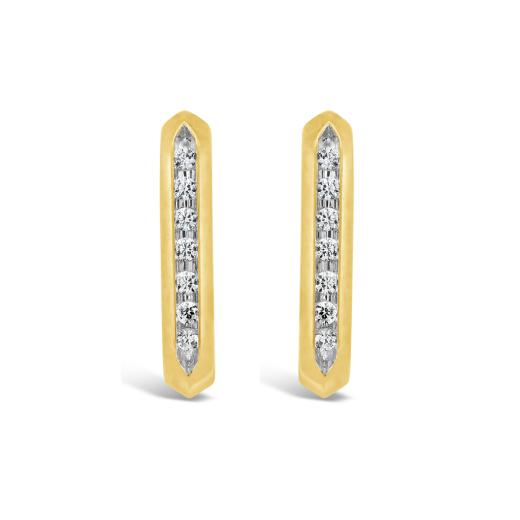 Elevate your elegance with our 10K Yellow Gold Diamond Hoop Earrings, featuring a sparkling 0.12 carat total weight of diamonds. The combination of radiant diamonds and warm yellow gold creates a timeless and sophisticated accessory, perfect for any occasion.