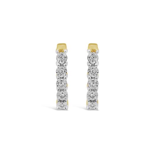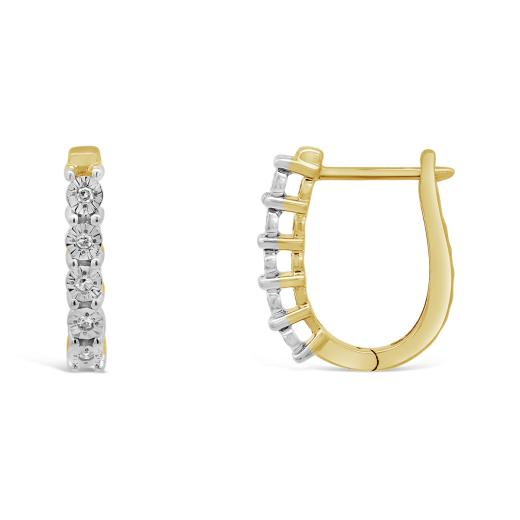 Adorn your ears with timeless elegance wearing our 10K Yellow Gold Diamond Hoop Earrings. These hoops feature a classic design with a touch of sparkle, adorned with dazzling diamonds that add a touch of glamour to your look. Crafted in 10K yellow gold, these earrings are a versatile and sophisticated accessory, perfect for both casual and formal occasions.