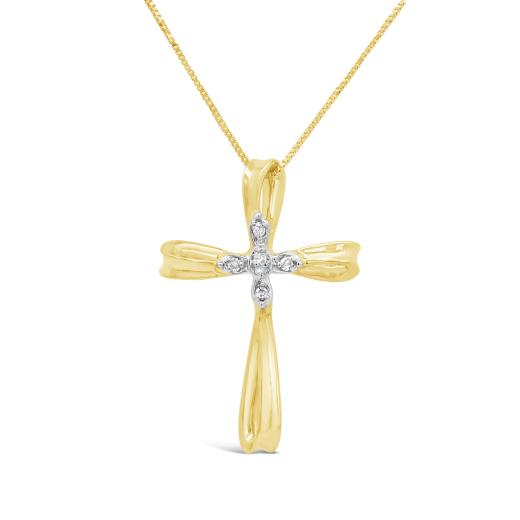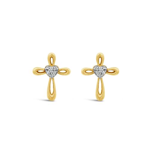 Illuminate your style with these elegant 10K Yellow Gold Diamond Cross Earrings, featuring a unique looped design. Adorned with dazzling diamonds, these earrings seamlessly blend spirituality with sophistication. The warm glow of yellow gold adds a touch of timeless elegance, making these earrings a symbolic and fashion-forward accessory for any occasion.