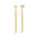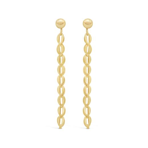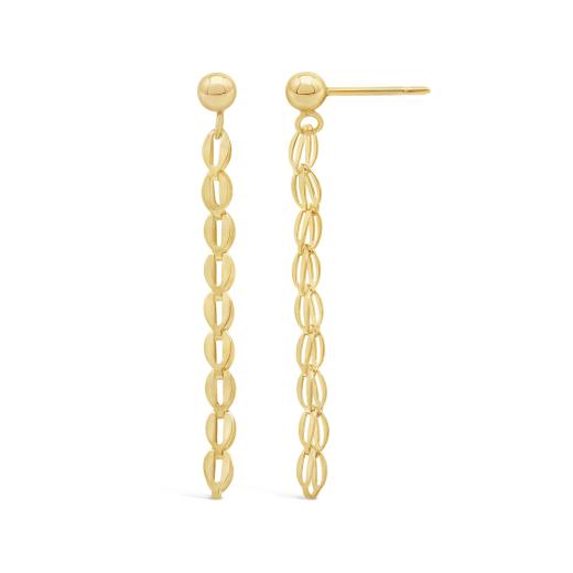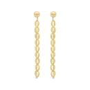 These elegant chain drop earrings are crafted in 10K yellow gold, featuring delicate chains that dangle gracefully with every movement. Their simple yet refined design adds a touch of sophistication and fluidity, making them the perfect accessory for both casual and formal occasions.