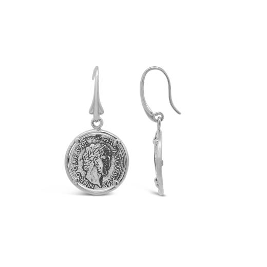 These sterling silver earrings feature a stylish coin drop design, offering a timeless and elegant look. The detailed coin pendant adds a touch of sophistication, making them a versatile accessory for both casual and formal occasions.