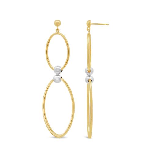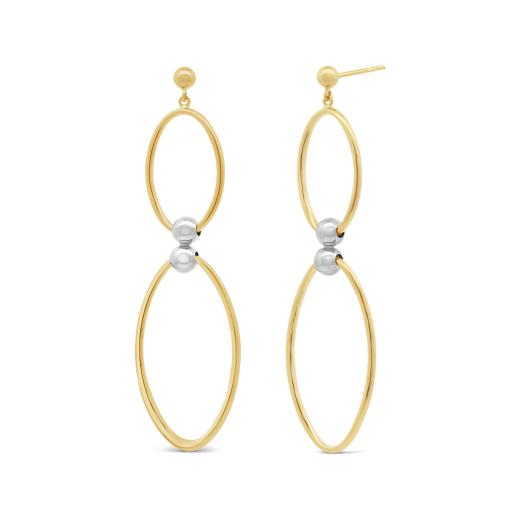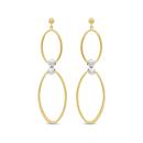 These 10K two-tone gold oval drop earrings offer a chic and modern touch to any ensemble. With their elegant design and contrasting gold hues, they gracefully catch the light, adding a refined yet understated sparkle to your look. Perfect for both everyday wear and special occasions.