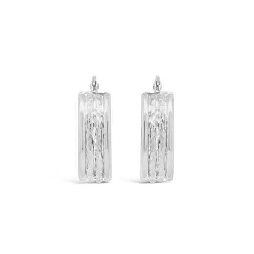 These 10K white gold hoop earrings feature a hammered, diamond-cut texture that catches the light with every movement. Their unique design combines modern elegance with a touch of artistry, making them a versatile accessory that adds sophistication and shine to any outfit.