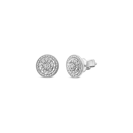 The Bouquet 0.10CTW diamond stud earrings in sterling silver feature a charming flower design, with diamonds delicately arranged to resemble petals. These earrings offer a timeless, elegant look perfect for everyday wear or special occasions