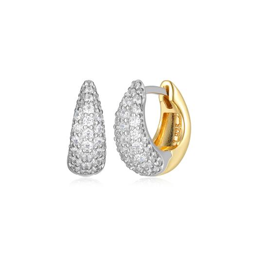 Reign Diamondlite Cubic Zirconia "sculpted serenity" 14mm pavé hoop earrings in sterling silver with 18K gold plating.