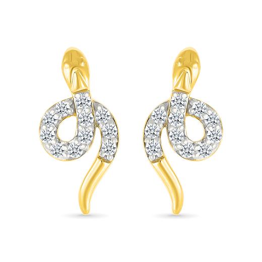 These 0.11CTW diamond snake studs shine in warm 10K yellow gold and make the perfect serpentine addition to your jewelry collection. Featuring a delicate, twisty serpent design adorned with shimmering diamonds, these dainty studs add a subtle yet striking touch. A perfect choice for those who love a hint of exotic charm and bold sophistication.