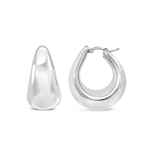 Confident and classic, these sterling silver large hoop earrings make a bold style statement with their sleek, high-polish finish. Their generous size adds drama and elegance, perfect for elevating everyday outfits or complementing evening wear.
