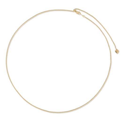 The 10K Yellow Gold Adjustable Wheat Chain, capable of adjusting up to 22 inches and measuring 0.80mm in width, is a delicate and versatile accessory. Crafted from 10-karat yellow gold in a wheat chain style, it offers a subtle yet elegant look that complements various styles and outfits due to its adjustable length.
