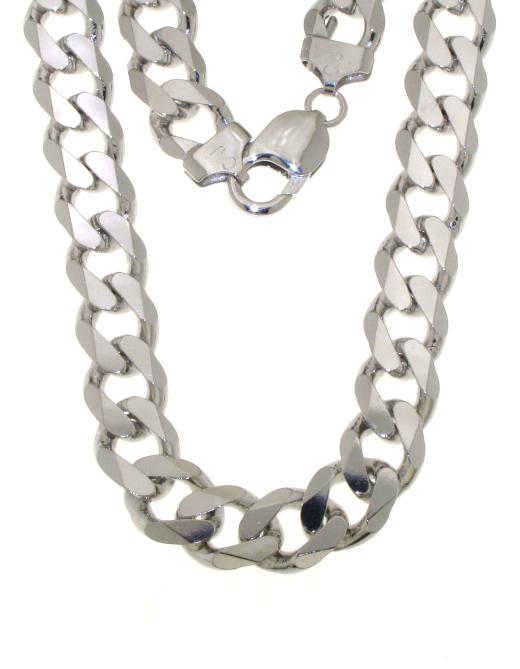 The classic curb design, known for its interlocking links, drapes effortlessly around the neck, creating a striking statement piece that complements both casual and formal styles.
