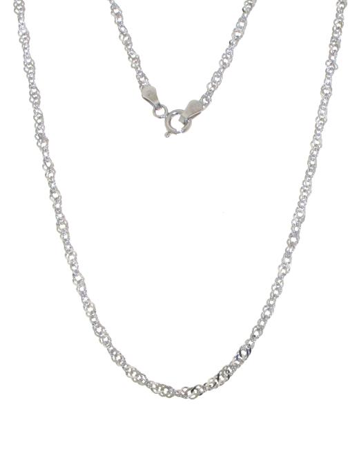 The Sterling Silver 24" 2.1mm Singapore Chain embodies grace and sophistication. Fashioned from high-quality sterling silver, this chain boasts the intricate and eye-catching Singapore link design, known for its twisting and interwoven pattern that creates a sleek and elegant appearance. With a length of 24 inches and a width of 2.1mm, it offers a refined and versatile look suitable for both casual and formal occasions. The unique texture of the Singapore chain adds a touch of intricacy to any outfit, making it a stylish choice whether worn alone or paired with a pendant or charm. This chain is a timeless addition to your jewellery collection, showcasing sterling silver's enduring allure.